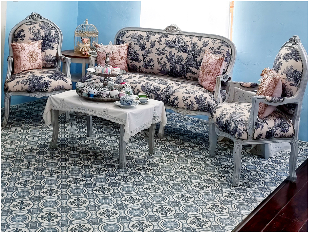 Bodenfläche, bestehend aus z. B. Barock Sofas,